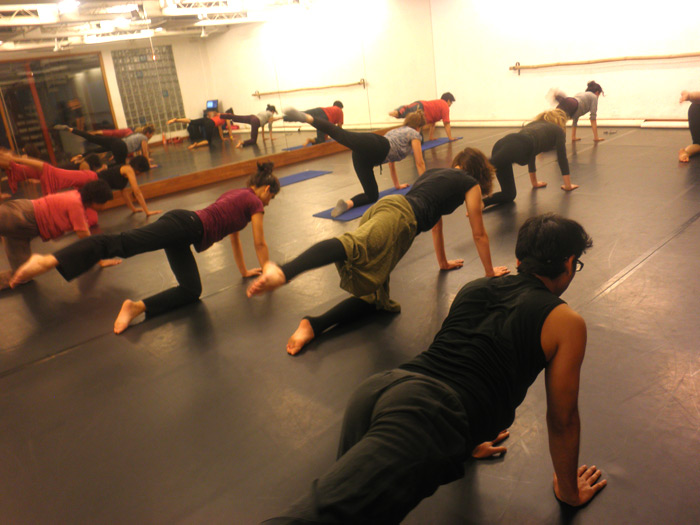 These classes are an attempt to find inner connections present in the body and mind by exploring various tools presented by yoga, contemporary dance and theatre work. The class will have an hour of hatha yoga practice with mantra chanting, asana, pranayama and meditation work. This section will attempt to find integration of "head, heart and hand" in practices so that one can benefit from the dynamics of the seamless synchronization of energy, breathe, physical movement and intention. The remaining hour we will explore contemporary dance technique (release) and move through the space while we connect to gravity, momentum and weight of the body. There will be emphasis on understanding bio mechanical functions of the body which helps in finding ease while dancing.